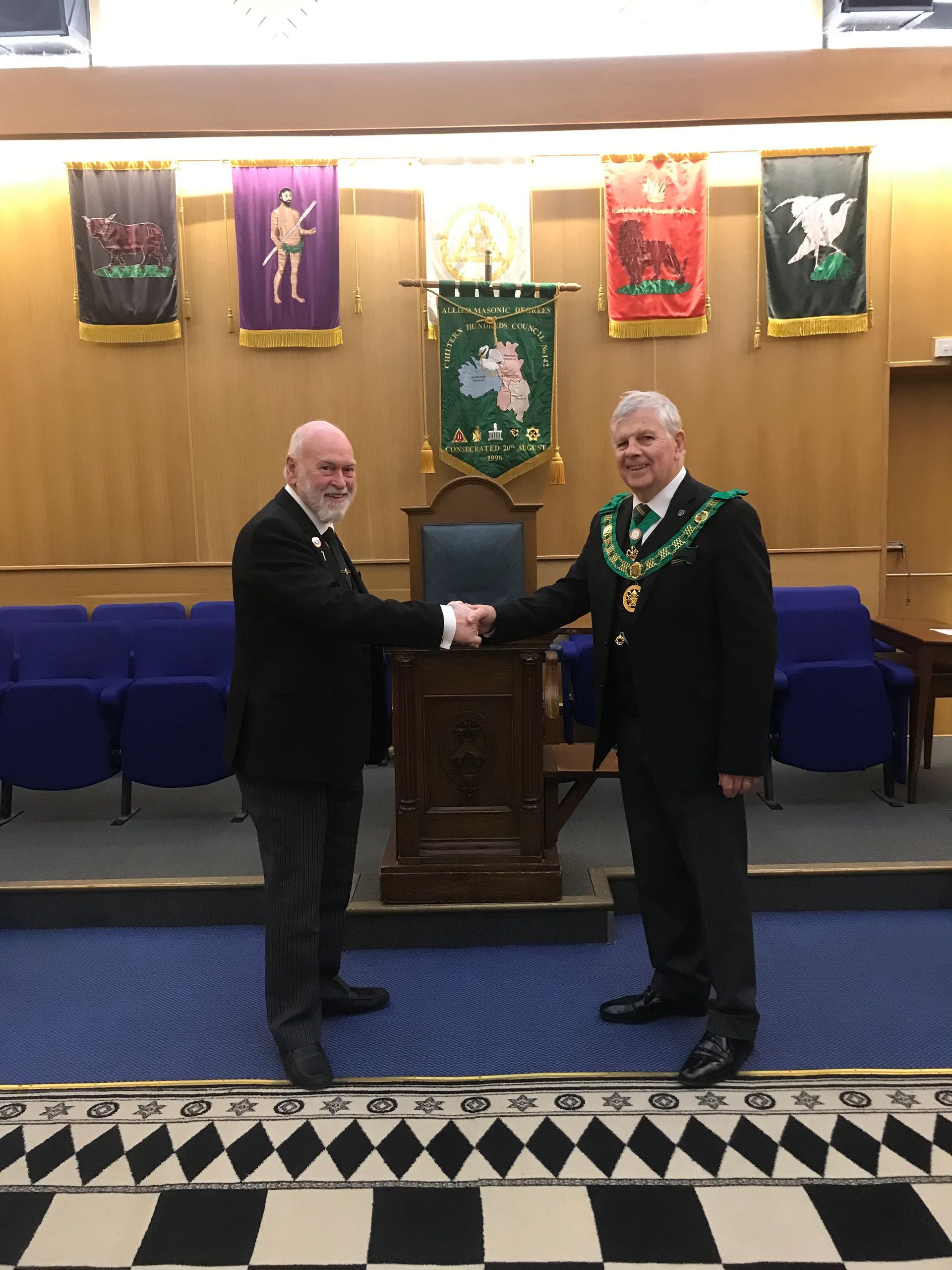L to r: RW Bro Ian Bailey (DGM), W Bro David Hill (WM),
