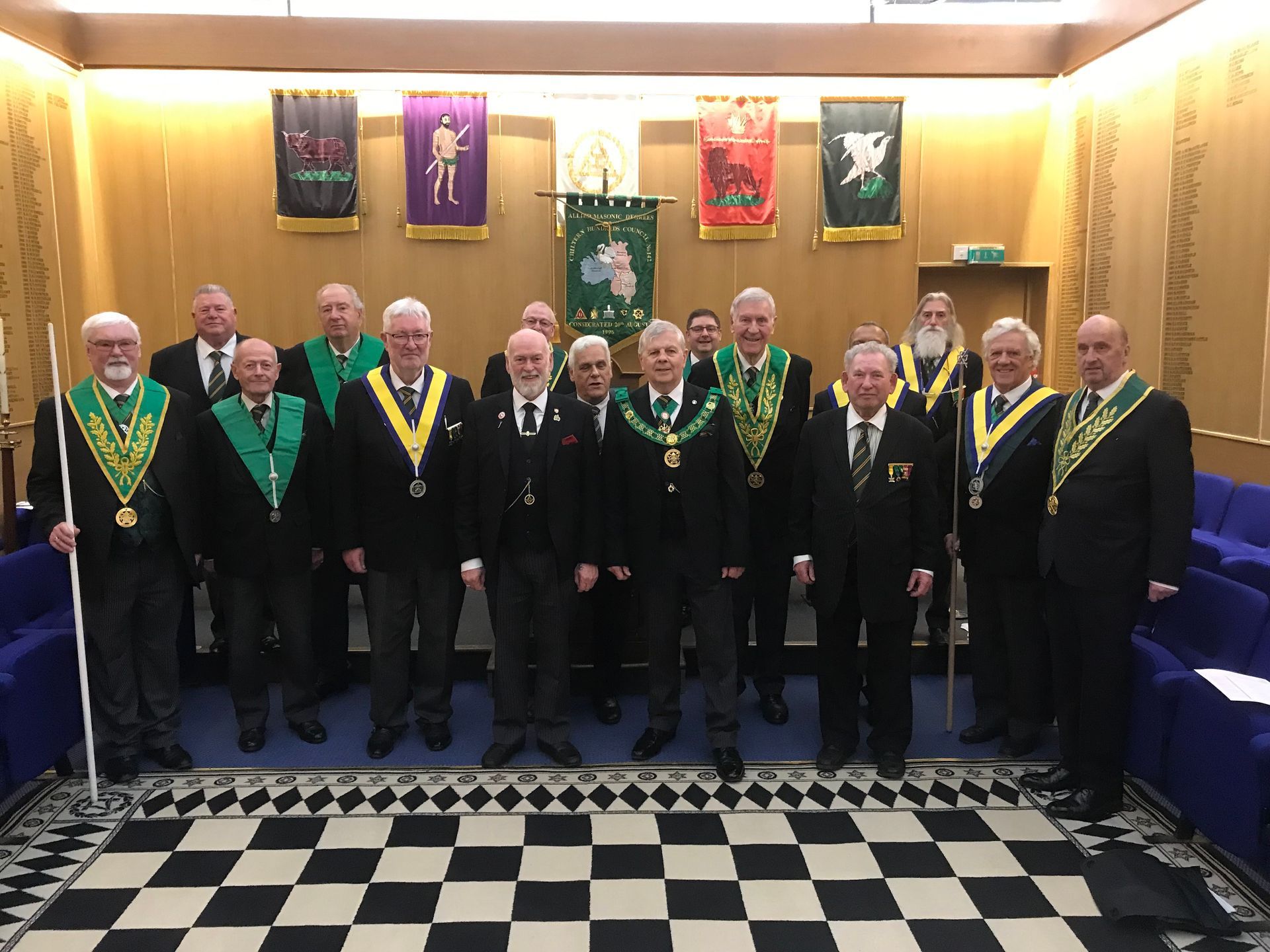 During the meeting W Bro Ian Crossley was invested as the deputy to the District Grand Prefect, with V Wor Bro Glen Sapsford stepping aside after six years in the post. Following the appointments and investitures of District Officers for the year, it was a hasty retreat to the bar, followed by a delightful luncheon.